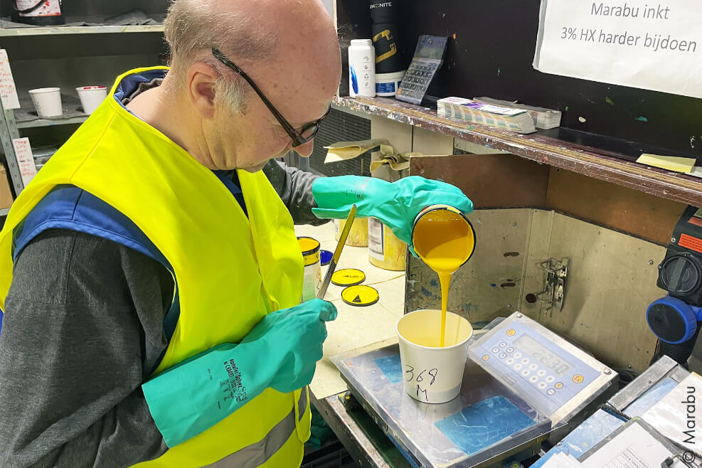 För att designa sina flaskor samarbetade Eurobottle med tryckspecialisten Bewel och använde Marabus Ultra Pack UVFP screentryckfärg. Denna UV-färg med låg migration är särskilt utvecklad för förpackningsindustrin och uppfyller de strängaste standarderna för livsmedelssäkerhet, inklusive Nestlé Guidance och EuPIA-GMP-certifieringar.
