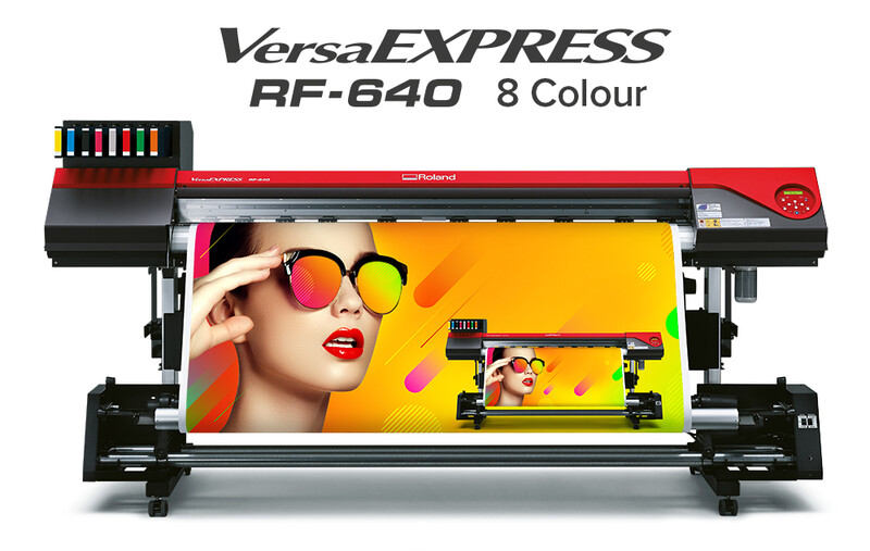 Roland DG lanserar VersaExpress RF-640 8 som är en utveckling av den otroligt populära storformatsskrivaren RF-640 Dual. Den är utrustad med 8 färger, Eco Solvent. Printern erbjuder det bredaste färgområdet i sin klass för utomhusbeständig grafik. RF-640 8 Color är det perfekta valet för tryckerier som vill göra sina kunder hänförda med den kraftfulla färggamut som överstiger kundernas förväntningar. Ännu mer imponerande, trots den otroliga kvalitet och kapaciteten som lösningen erbjuder, är att Roland VersaEXPRESS RF-640 8 Color är prissatt för att vara branschens mest prisvärda 8-färgsskrivare.